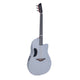 A very stylish design in all white. It begged for personalized decals. Where it rests on the right leg, it has a tendency to slide because of its contour and smoothness. I applied small Velcro strips on the bottom leg rest and that solved the problem. It has a richer tone using the built in amp/equalizer through a Spark amp. It is easy to play for a steel string style acoustic guitar.