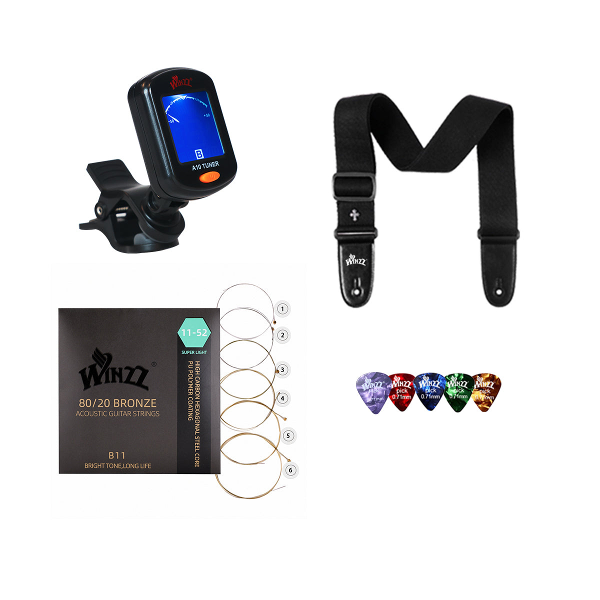 WINZZ Acoustic Guitar Strings Set – Hex Core High Carbon Steel with 80/20 Bronze Wound and Anti-Rust PU Coating
