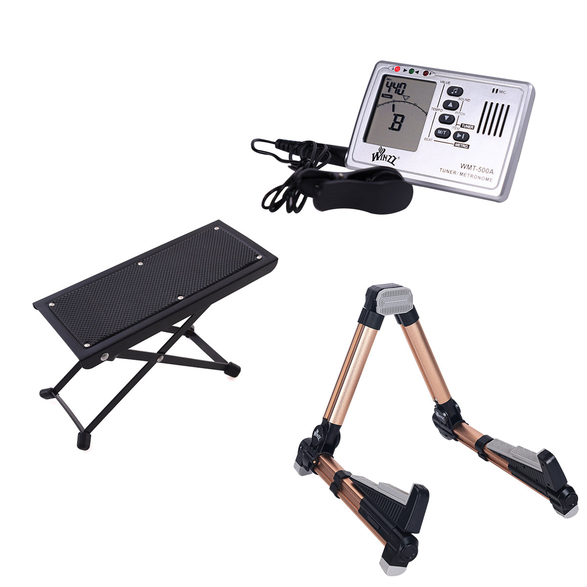 WINZZ Guitar Footrest with Anti-Slip Rubber Pad, Foldable Metal Guitar Footstool for Classical Guitar