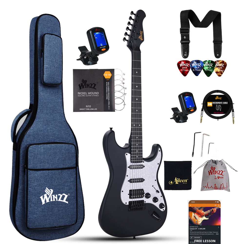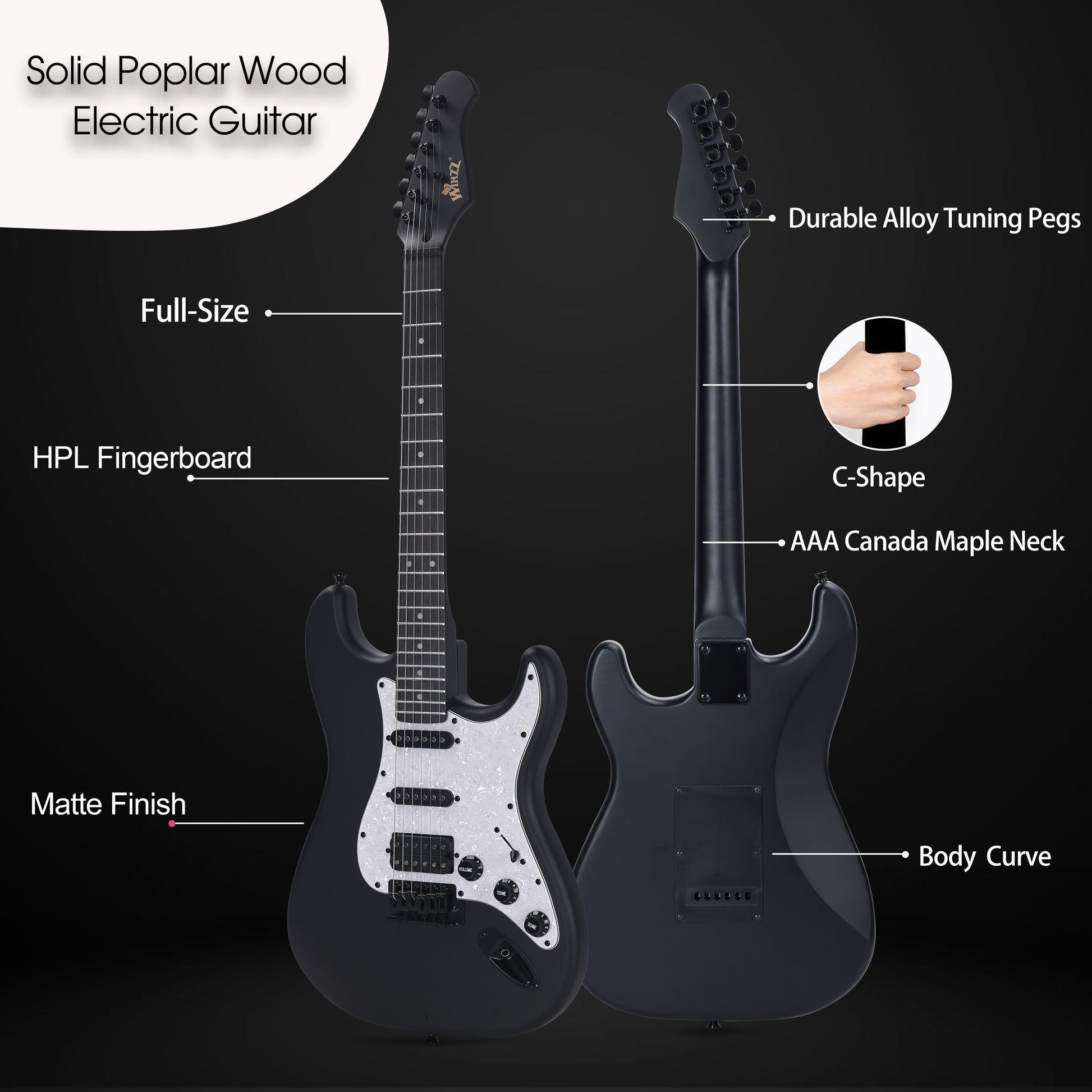 (Ausverkauf) WINZZ E-Gitarre aus massivem Pappelholz – 39 Zoll, anfängerfreundliches Design, perfekt zum Üben und Auftreten