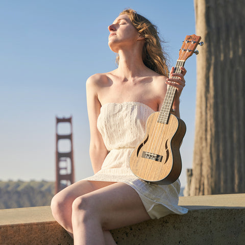 El ukelele de concierto de 23 pulgadas es más grande que el ukelele soprano, con una escala de aproximadamente 38,5 cm. Esta longitud adicional permite más trastes con mayor separación entre ellos. Es el ukelele perfecto para músicos con manos grandes y anchas, así como para músicos de nivel intermedio que buscan un sonido más potente.