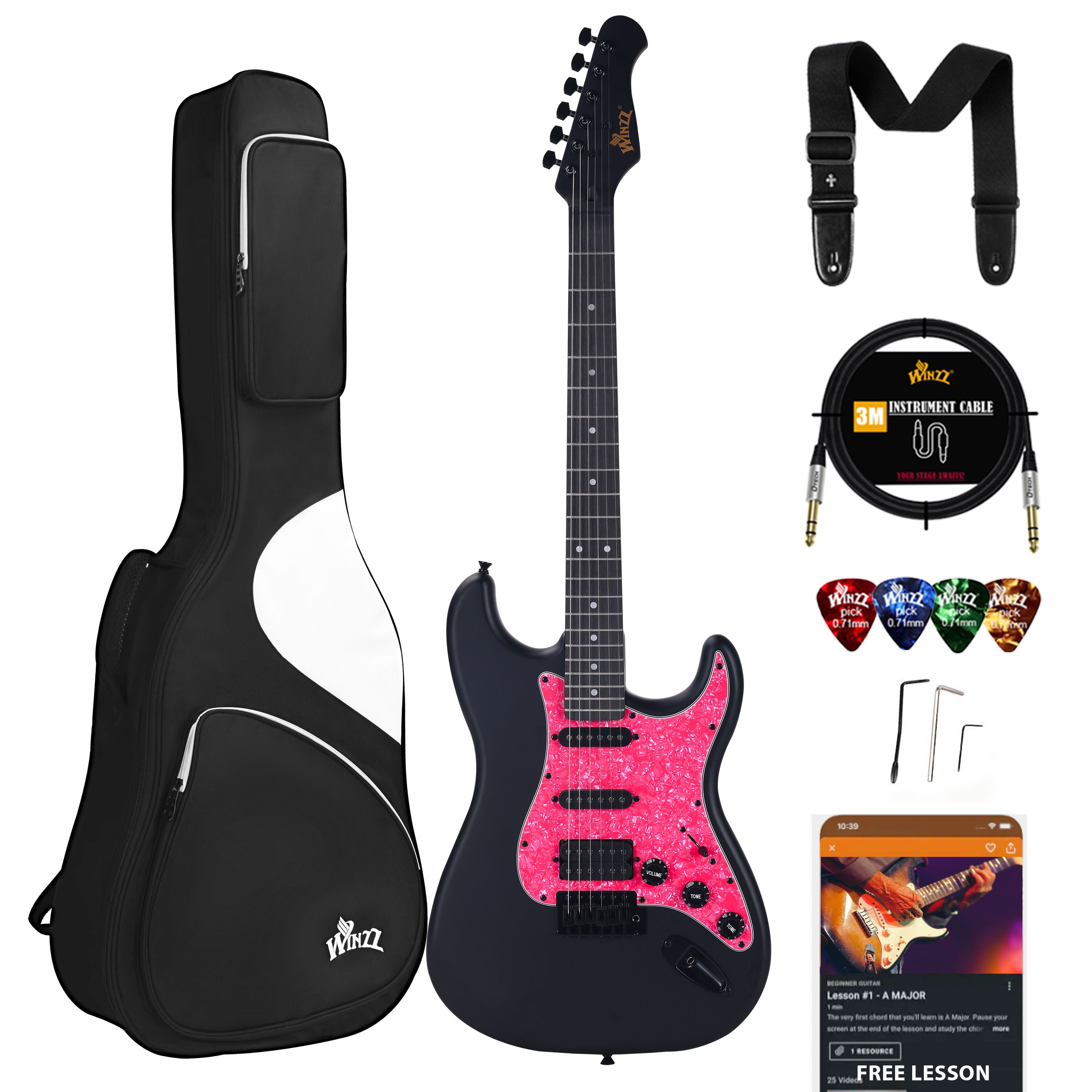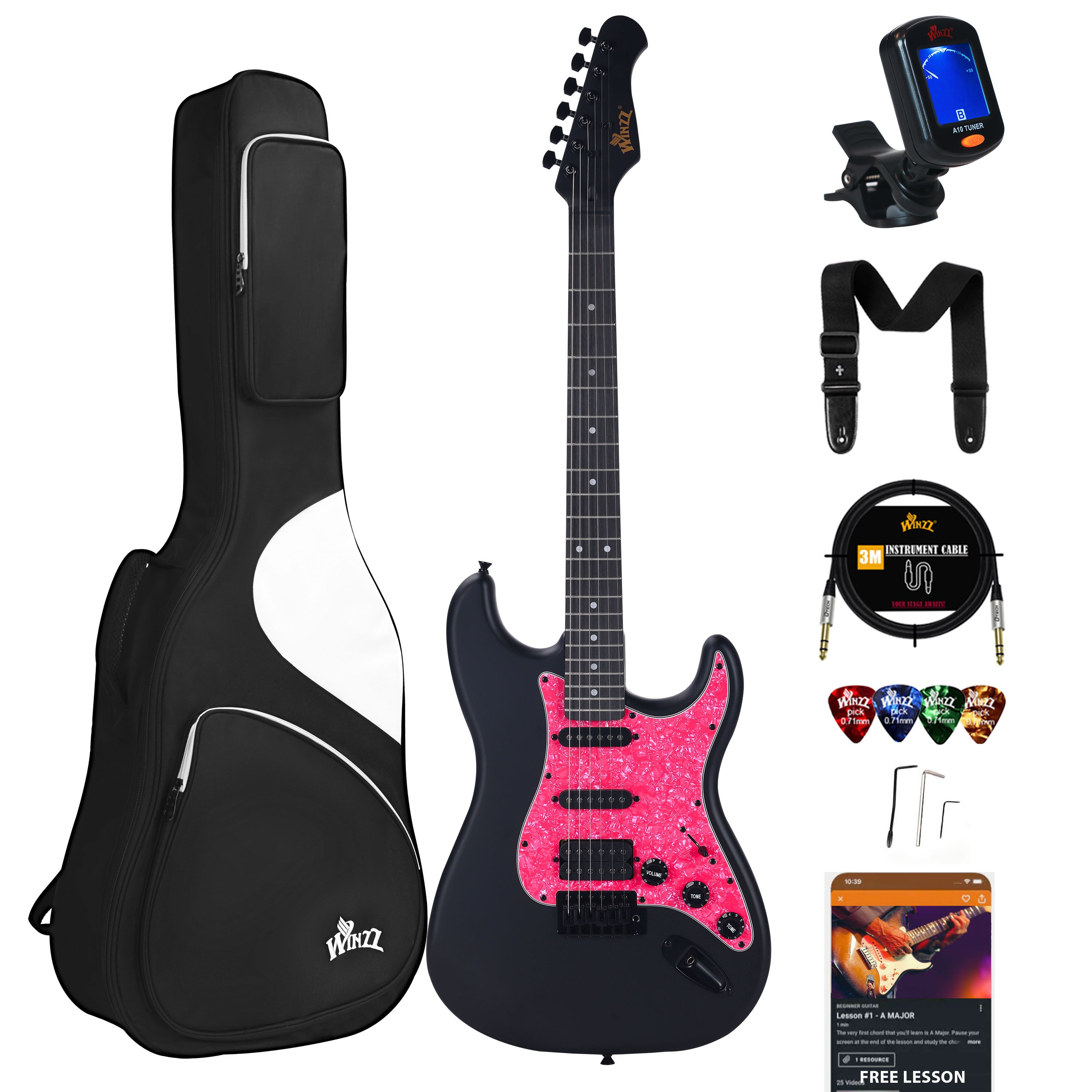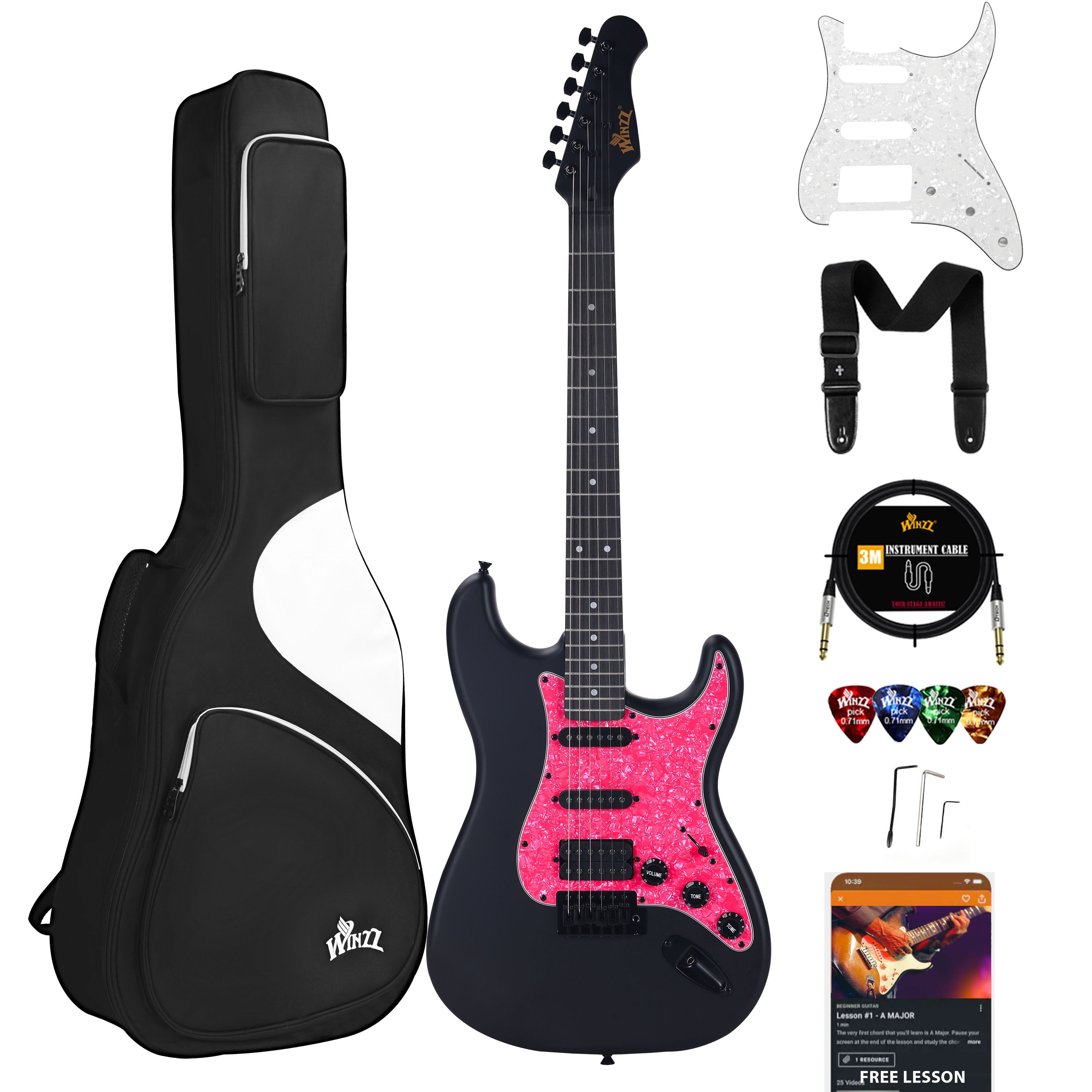Guitarra eléctrica WINZZ de madera maciza de álamo con golpeador rosa - Diseño de 39 pulgadas para principiantes, ideal para practicar y tocar