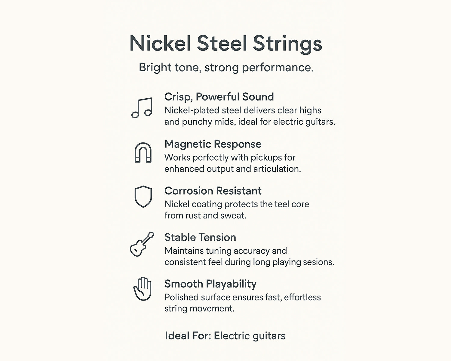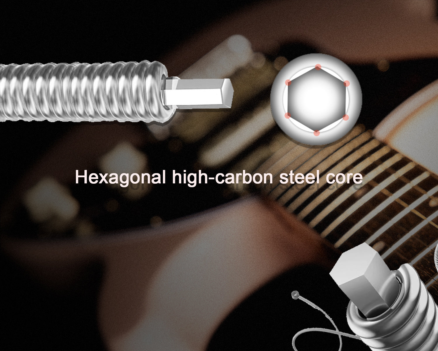 Built with a hexagonal high-carbon steel core, the strings offer exceptional durability and tuning stability. The unique hexagonal shape provides a stronger grip for the winding wire, ensuring consistent vibration and a bright, well-balanced tone that lasts longer.
