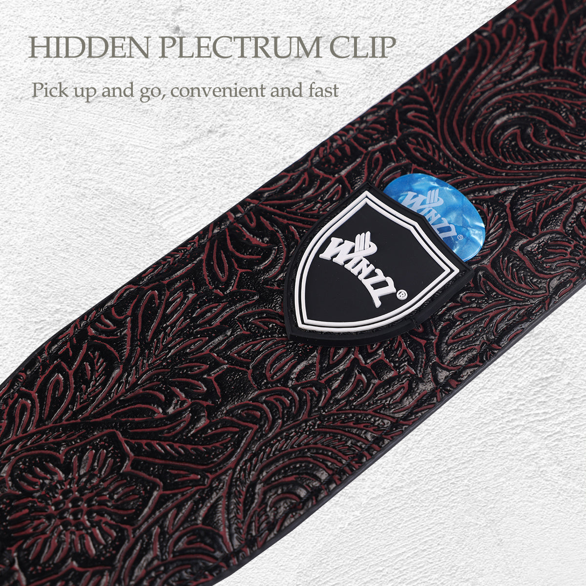 WINZZ Adjustable Leather Guitar/Bass Strap – Stylish & Universal Fit