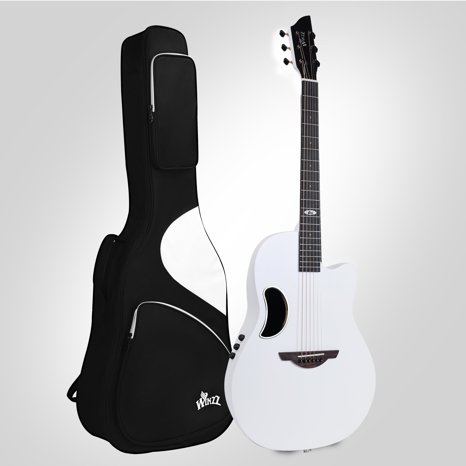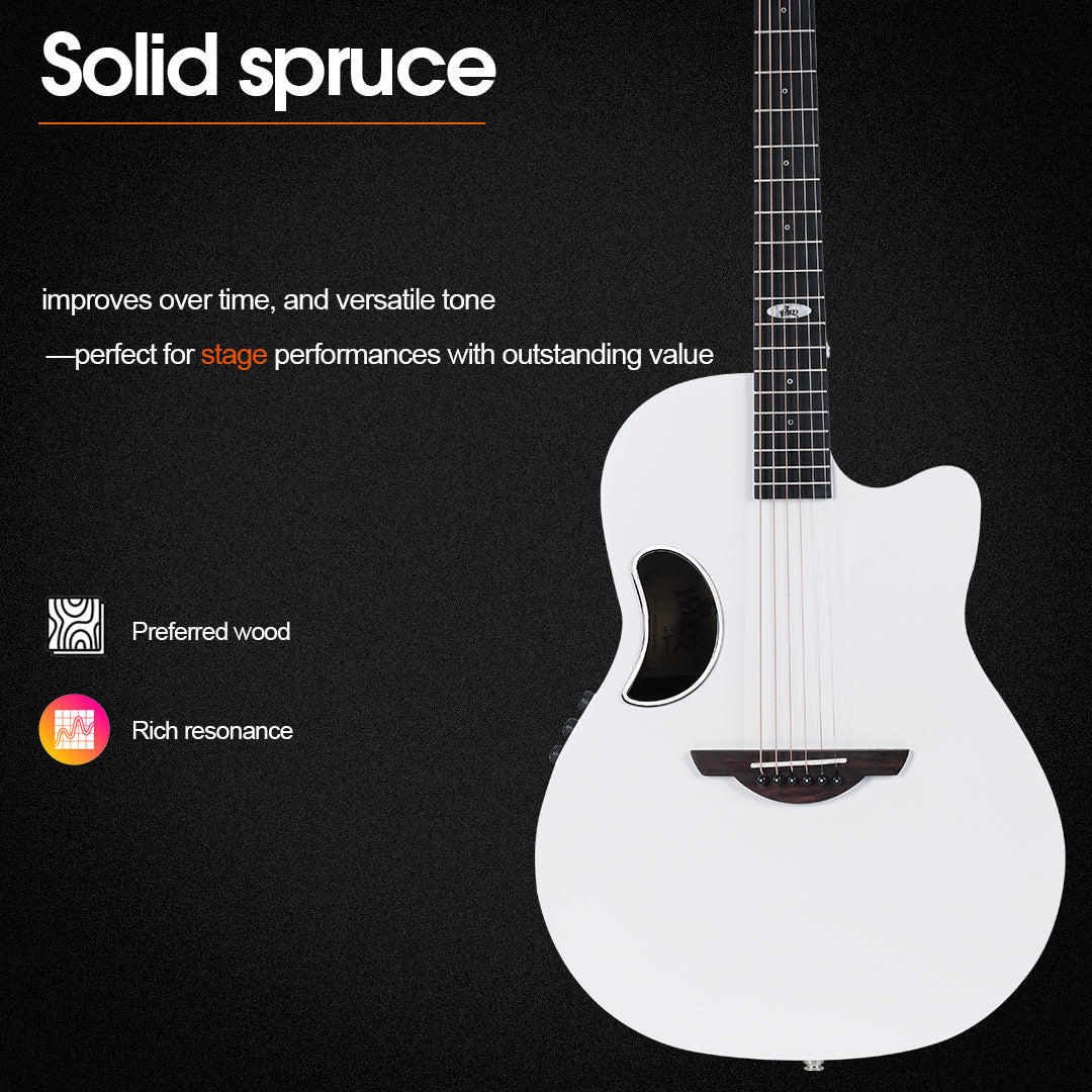 La guitarra blanca pura emite una luz violeta brillante bajo las luces del escenario, que recuerda a las estrellas centelleantes en el cielo nocturno, agregando una atmósfera misteriosa y encantadora a la actuación.
