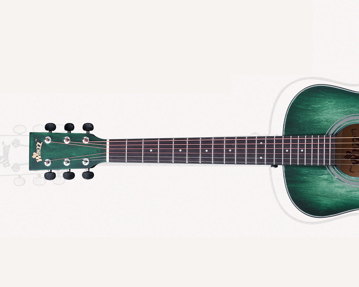 High density wood fingerboard and bridge offers both sturdy construct and smooth touch that you can roll over the nickel silver frets freely. The Sealed Gear machine head keeps the strings in tune, and the dual - action truss rod allows fine adjustment of the guitar neck.