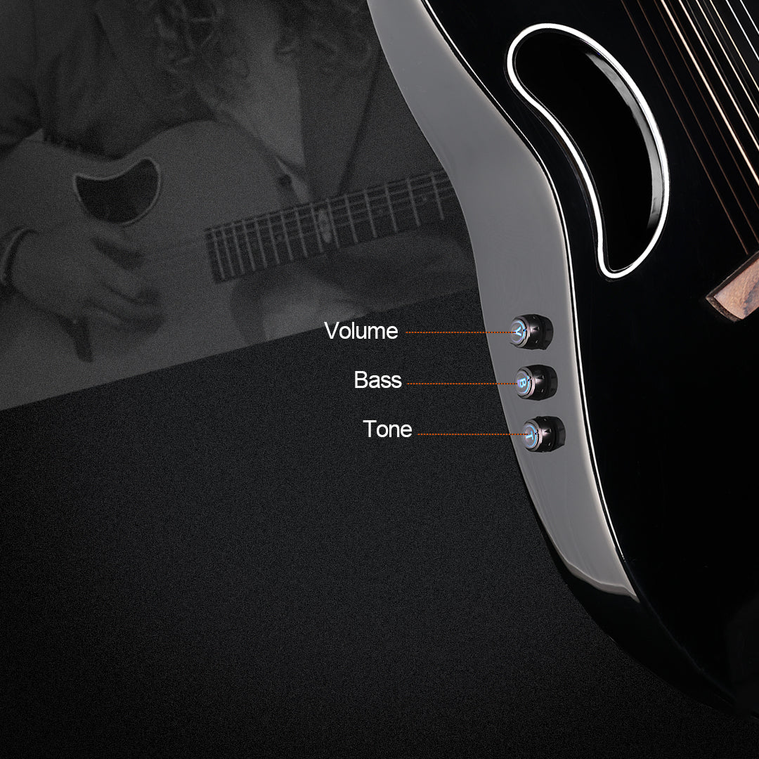 In conjunction with the unique and simple bracing design,the "LUNA" sound hole emerge in response.Like a crescent moon in the dark night,shining billiantly on the stage for you.