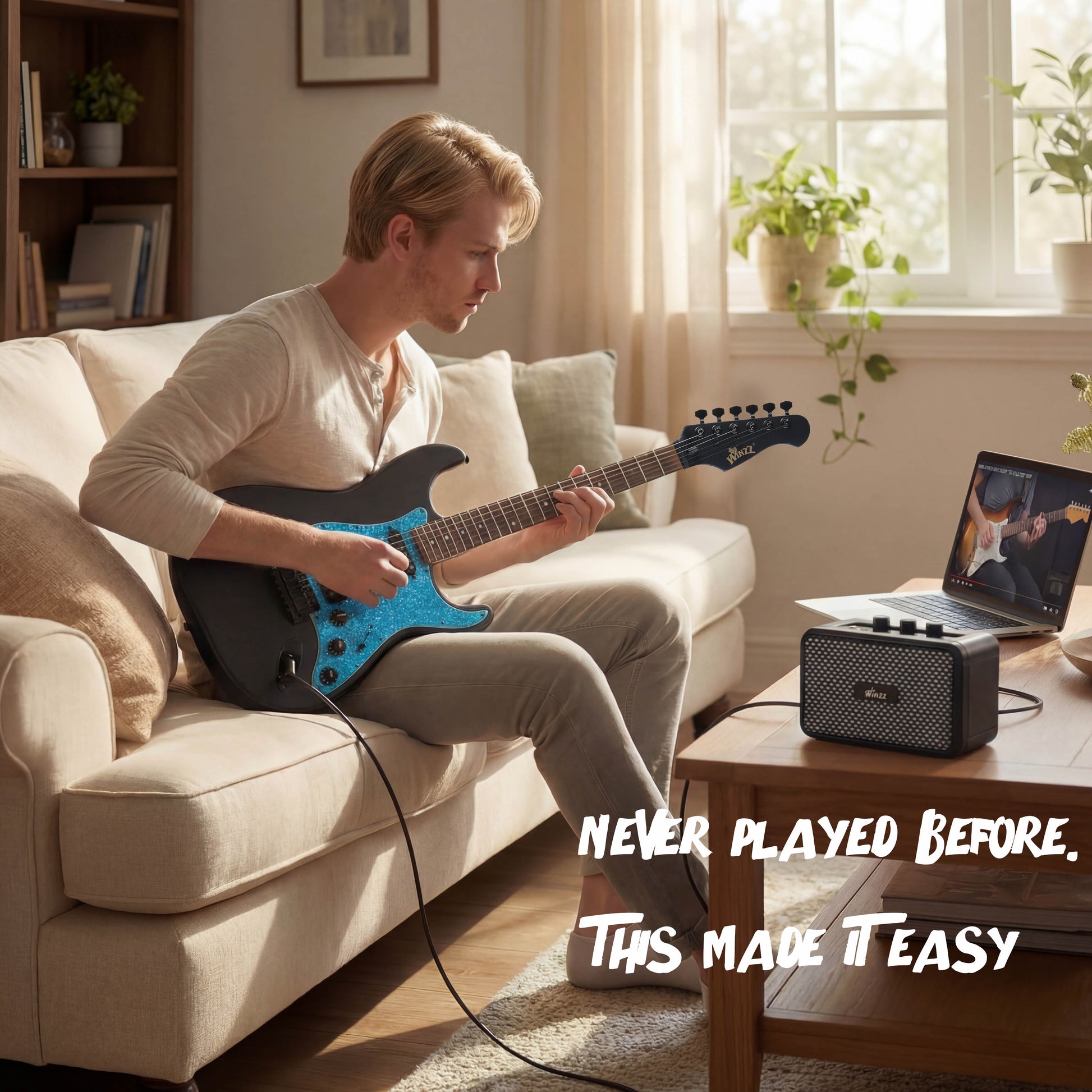 WINZZ 39-Inch EGS112H Solid Poplar Wood Electric Guitar With Blue Pickguard