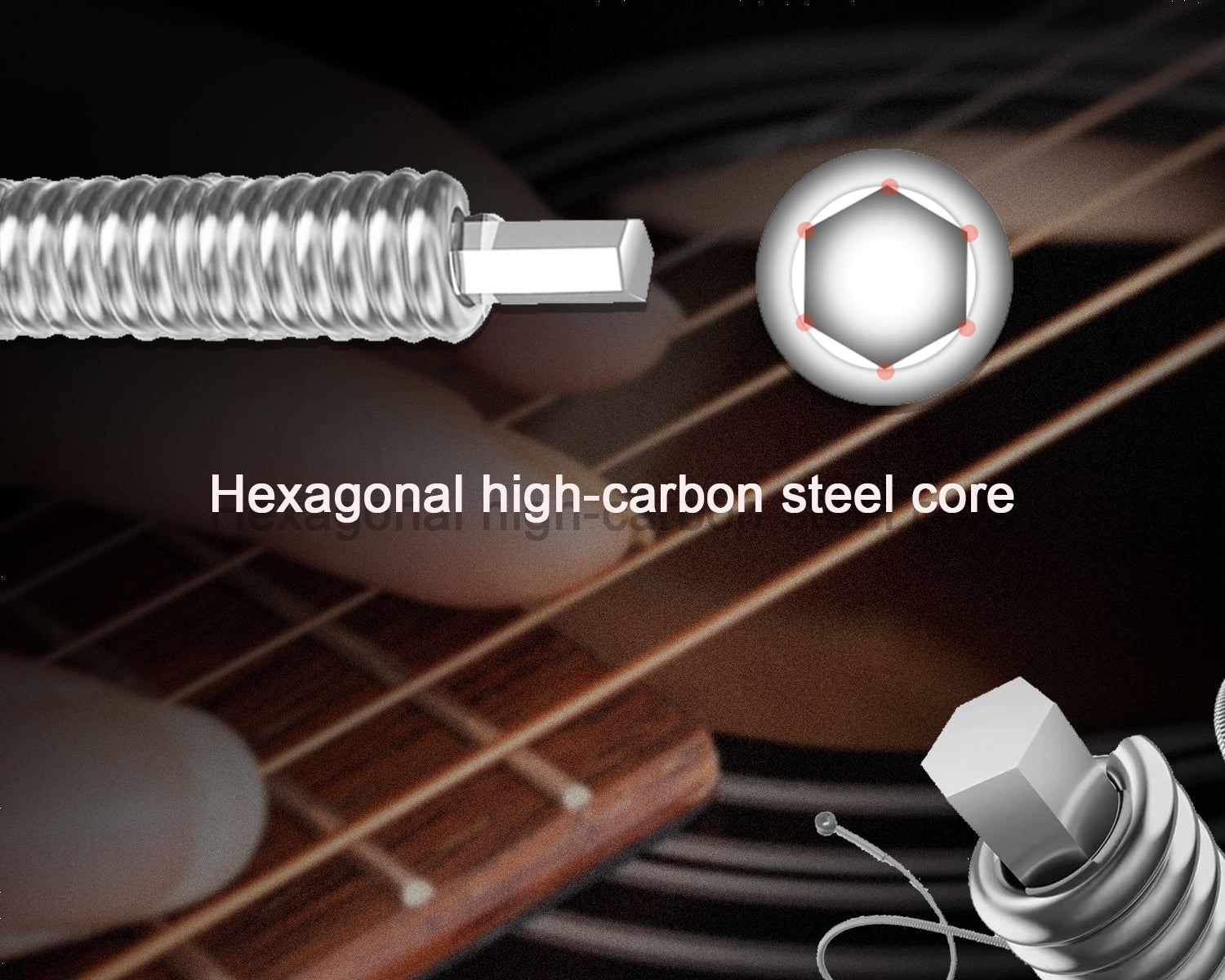 Built with a hexagonal high-carbon steel core, the strings offer exceptional durability and tuning stability. The unique hexagonal shape provides a stronger grip for the winding wire, ensuring consistent vibration and a bright, well-balanced tone that lasts longer.