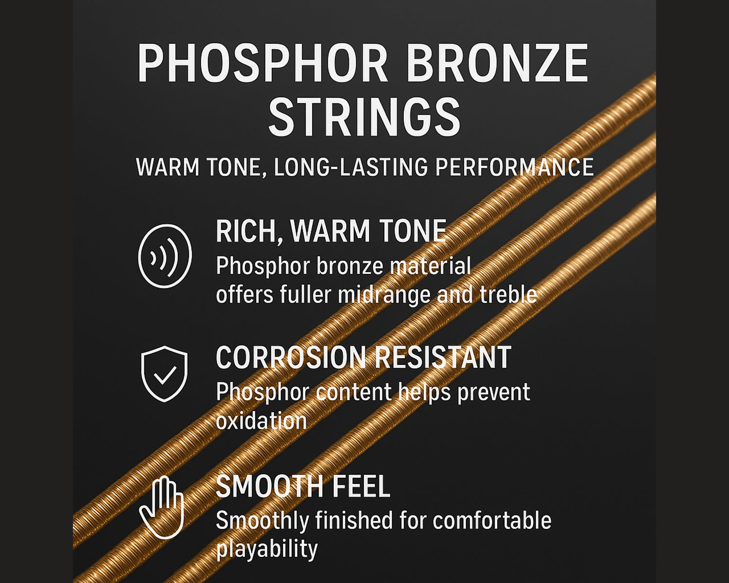 Warm and Bright Tone: The phosphor bronze material delivers rich midrange and treble frequencies for a fuller, more resonant sound.