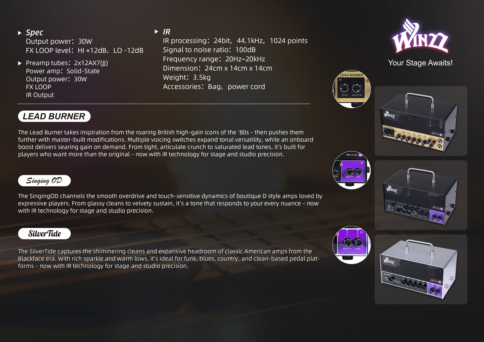 WINZZ Revival IR Series Musical Instruments Accessories TUBE IR Amplifier for Electric Guitar