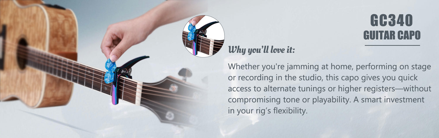 In addition to its capo function, the handle end is designed with a built-in bridge pin puller, making it convenient for adjusting or replacing strings anytime.