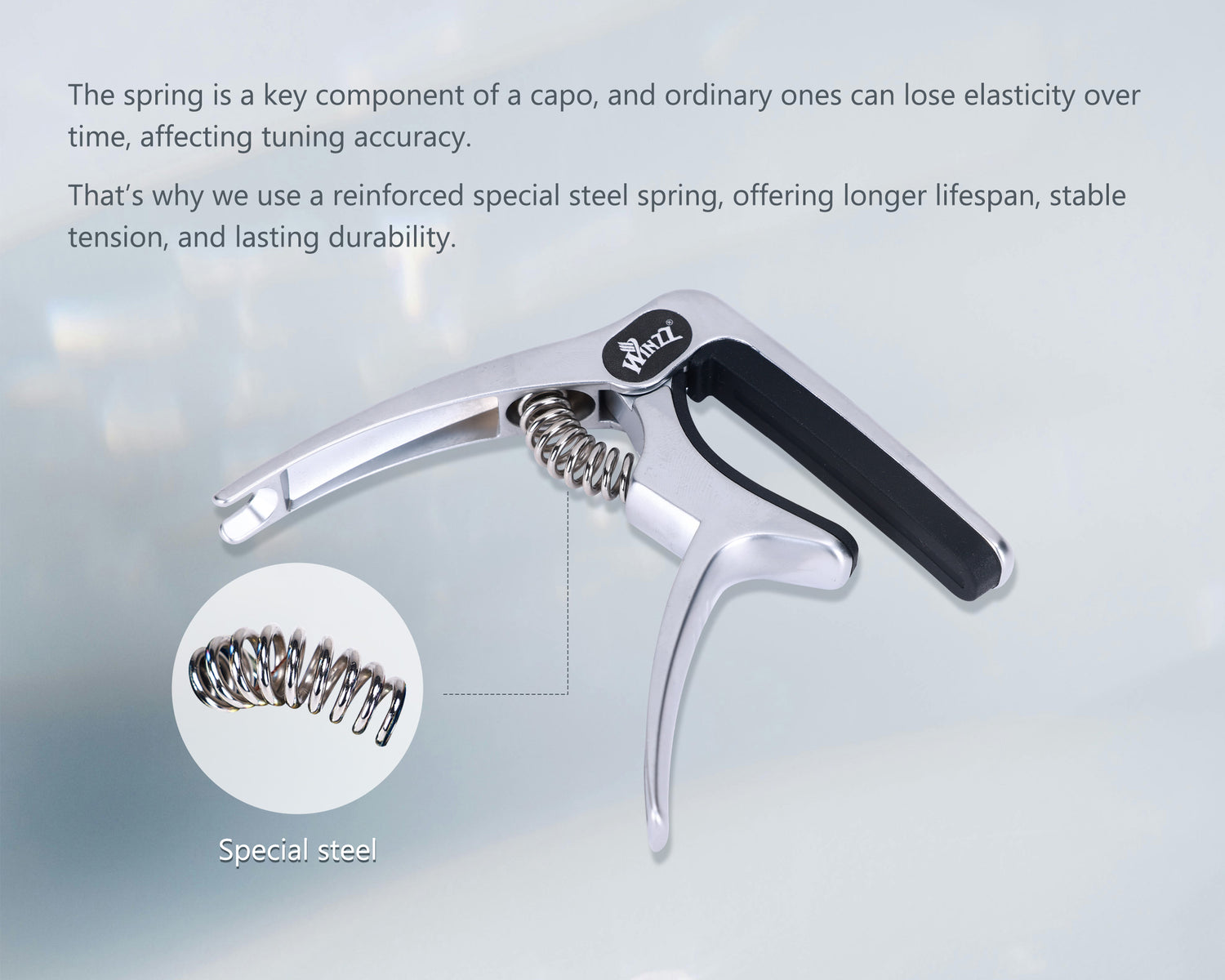 The spring is a key component of a capo, and ordinary ones can lose elasticity over time, affecting tuning accuracy.