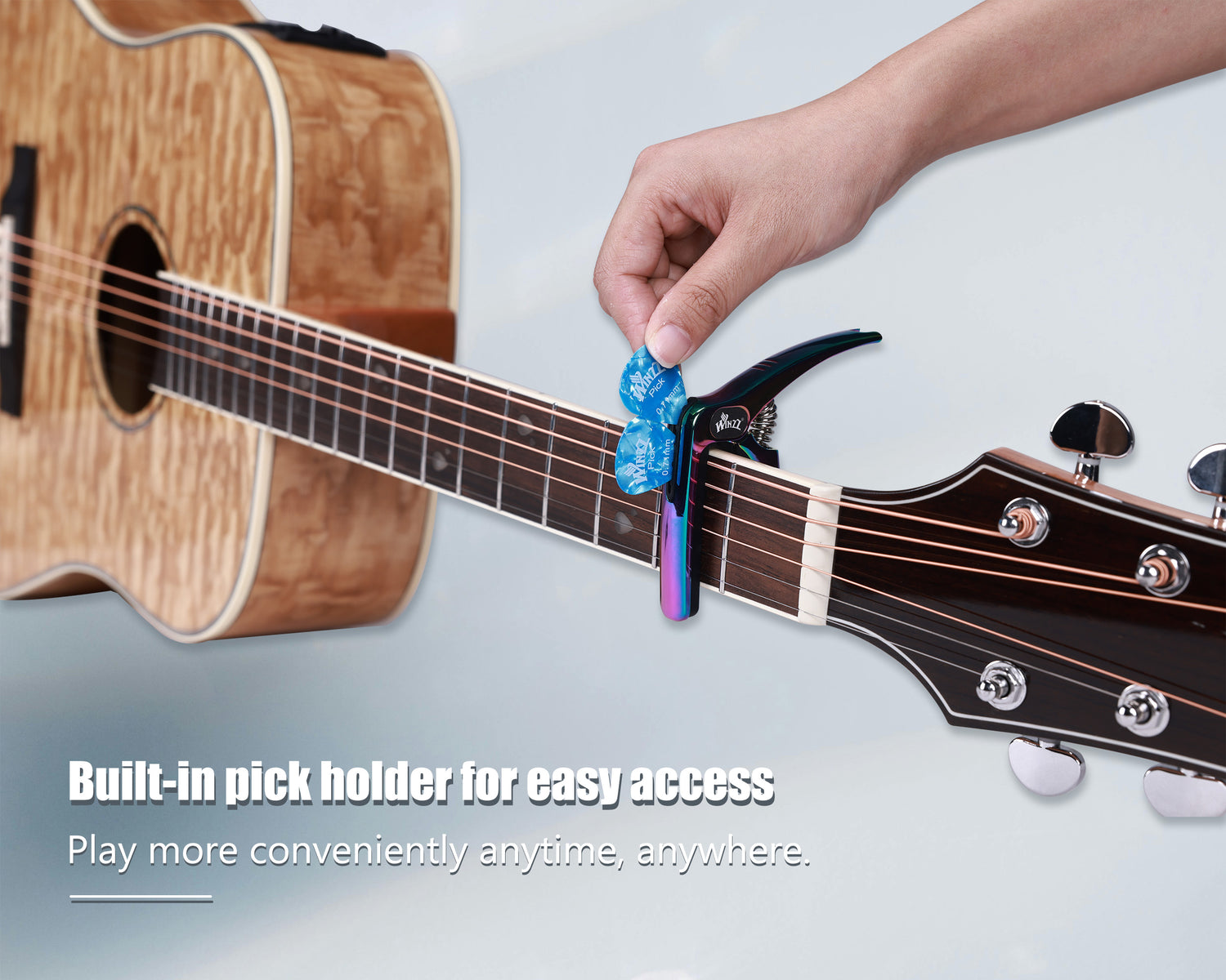 Built-in pick holder for easy access — play more conveniently anytime, anywhere.